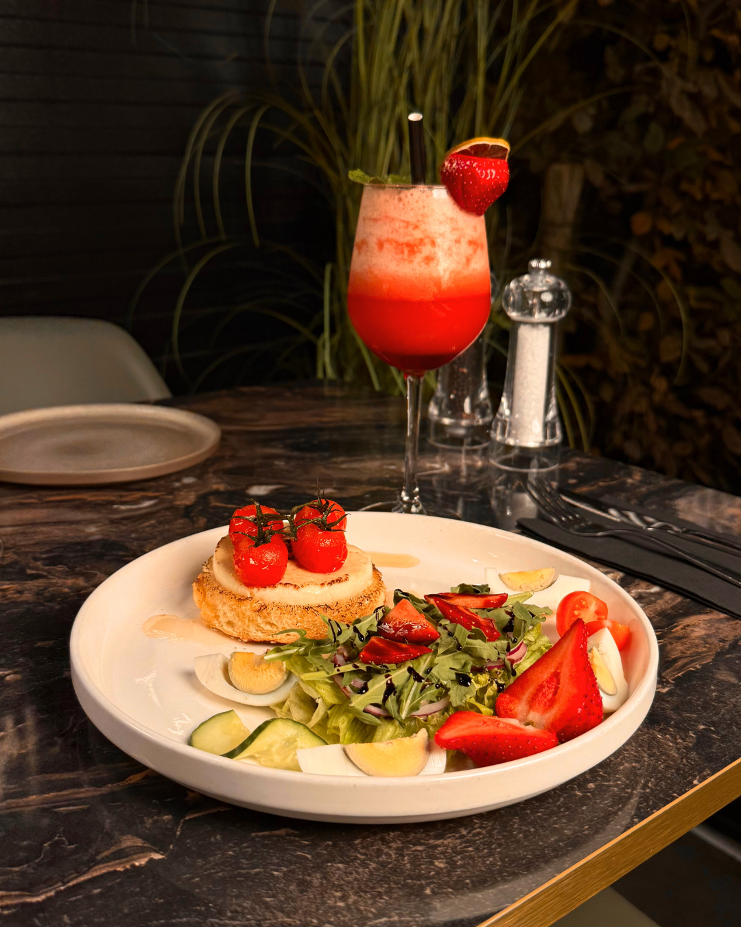 menthe , citron ,sirop de canne , fraise , glace pilée , eau gazeuse